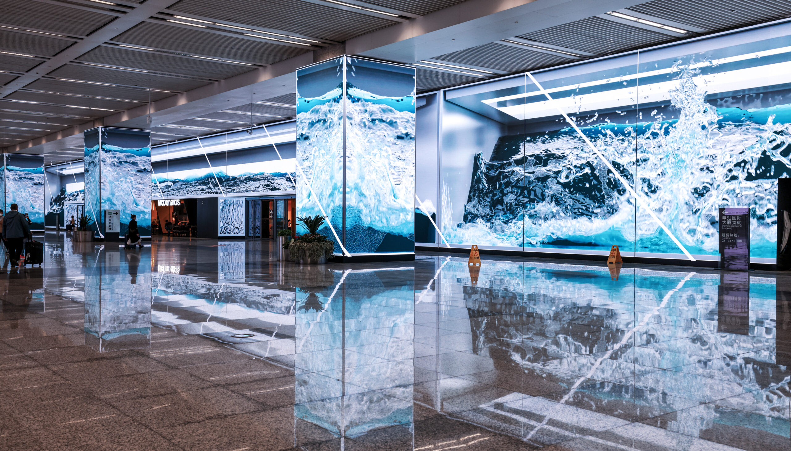 1,800m2 of Absen LED has been installed in the OXO City area of Shanghai Hongqiao Airport, one of China’s busiest transportation hubs. This ambitious project includes a 700m2 videowall at the airport’s exit, welcoming travellers into the adjacent shopping environment featuring 40 screens arranged into eight cubes. This dynamic 3D video content is seen by the 500,000 people a day that pass through the area. OXO City was built to integrate business, art, culture, services, travel, office, and other elements to meet the needs of its diverse customer base.