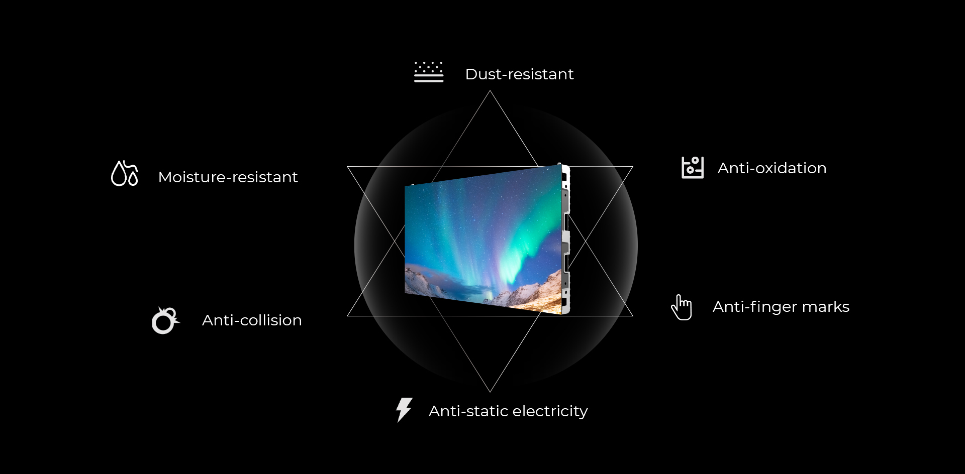 Absen's KLCOB V2 leverages advanced flip chip technology to deliver comprehensive, 360° all-around protection against external impacts, ensuring robust defense from every angle.
