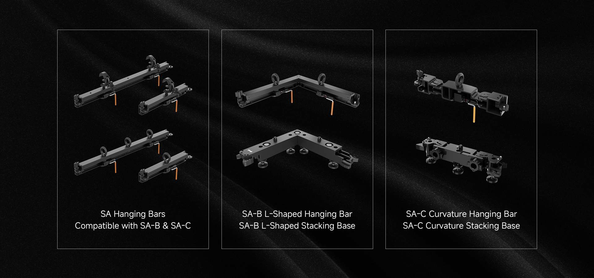 The Saturn-C (SA-C) flexible displays enhance creative freedom with a precision gear transmission mechanism, allowing easy adjustments of each panel from -30° to +30° in 1.25° increments. This enables the effortless creation of seamless curves, S-shapes, and cylinders starting from a 1.91-meter diameter (12 panels). When paired with SA panels, these displays open up even more possibilities for innovative stage design.