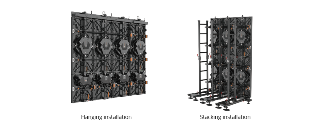 The VN series, resilient to strong winds for outdoor activities, is available in 3.9mm, 4.8mm, and 8.3mm pixel pitches. To build large LED displays quickly, a 1500*1000mm oversized panel is rolled out in addition to typical 500*500mm and 500*1000mm ones. The industrial design of the VN series was awarded the Red Dot Award.